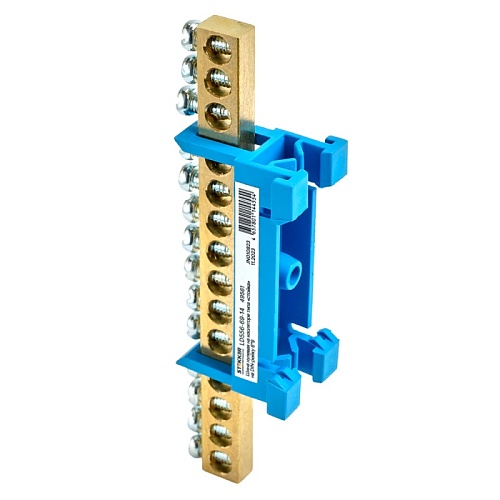 Шина "N" на изоляторе STEKKER 6*9 тип "стойка" на DIN-рейку 14 выводов, синий, LD556-69-14 49561