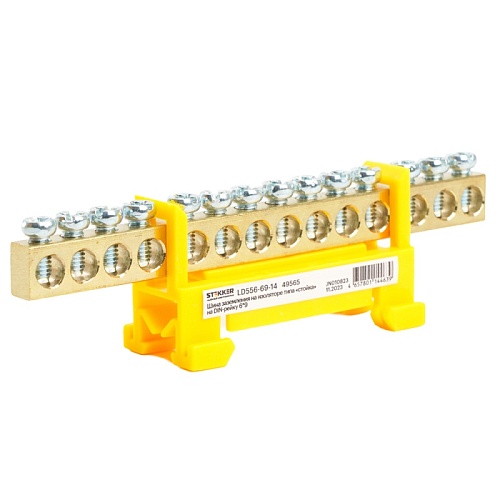 Характеристики Шина "PE" на изоляторе STEKKER 6*9 тип "стойка" на DIN-рейку 14 выводов, желтый, LD556-69-14