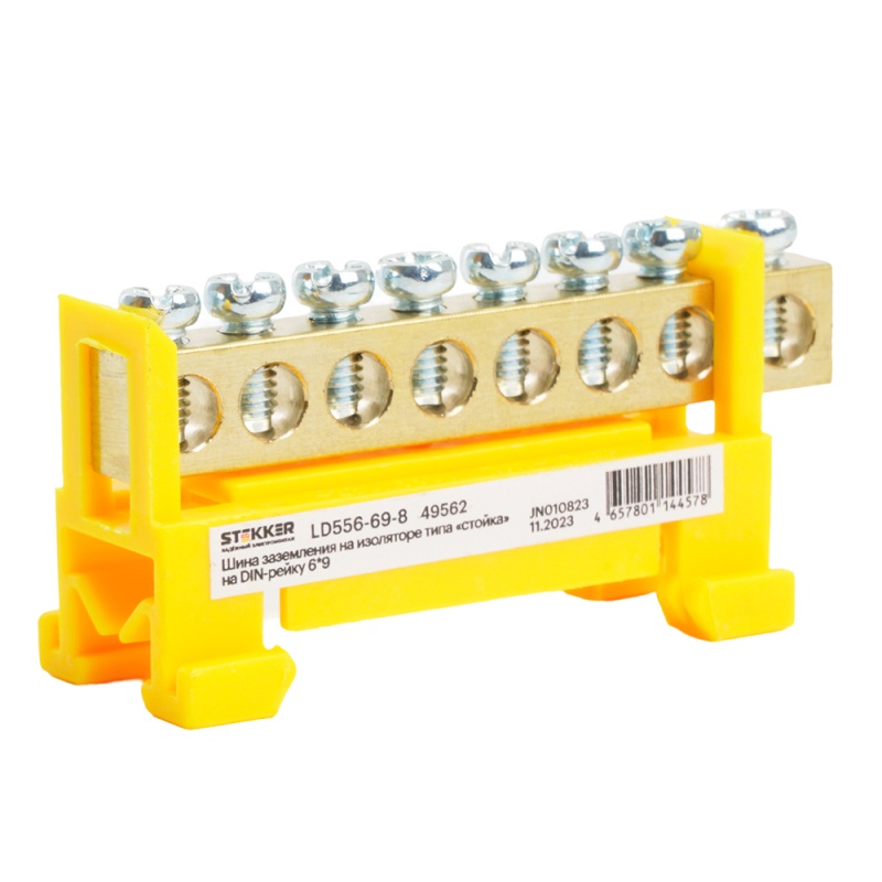 Характеристики Шина"PE" STEKKER на изоляторе 6*9 на DIN-рейку 8 выводов, желтый, LD555-69-8