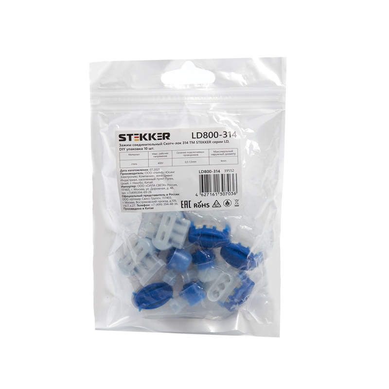 Характеристики Зажим соединительный Скотч-лок 314, 0,5-1,5мм2 (4мм) (DIY упаковка 10шт) STEKKER LD800-314
