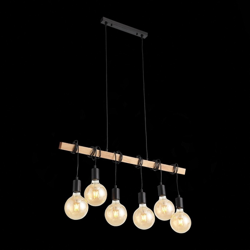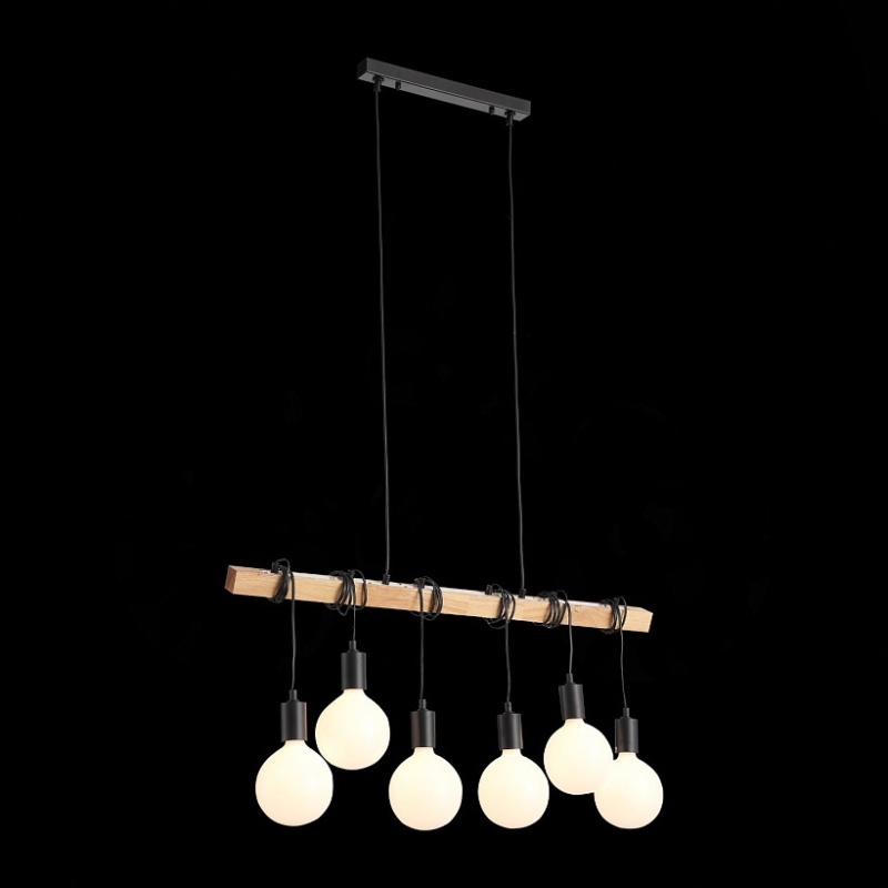 Светильник подвесной Черный, Светлое дерево E27 6*60W SL1142.403.06