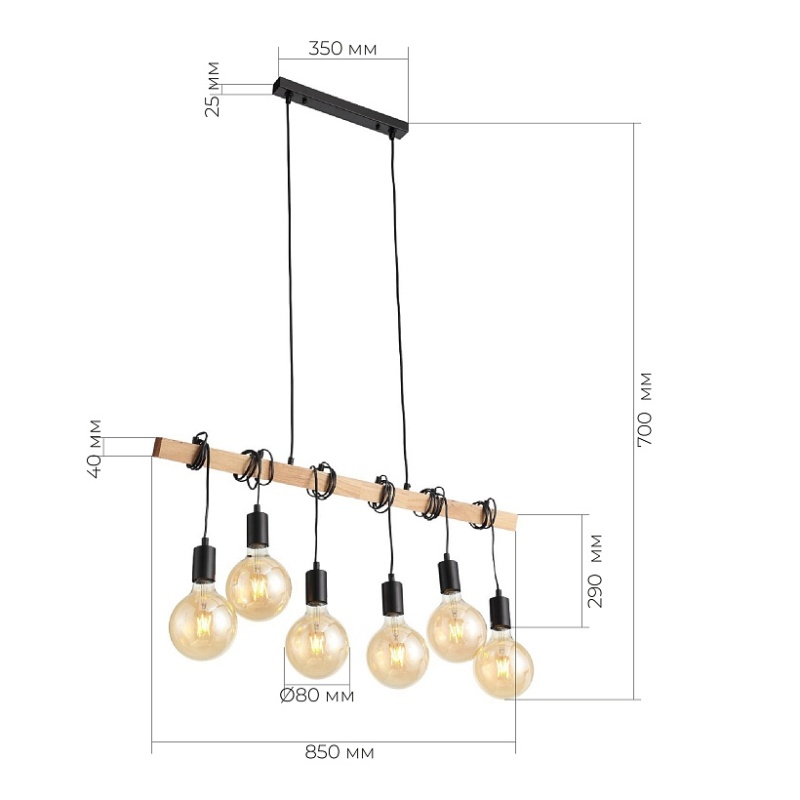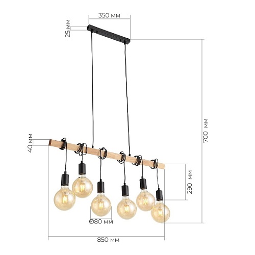 Характеристики Светильник подвесной Черный, Светлое дерево E27 6*60W SL1142.403.06