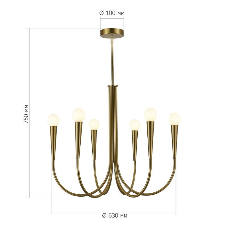 Характеристики Светильник подвесной ST-Luce Латунь E14 6*60W SL1243.303.06