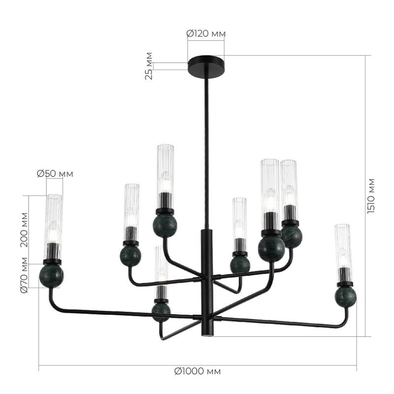 Характеристики Светильник подвесной ST-Luce черный/прозрачный E14 8*40W SL1244.403.08