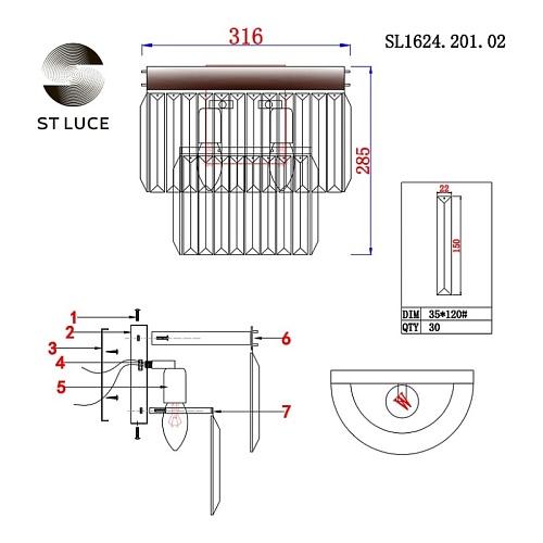 Характеристики Бра ST-Luce шампань/прозрачный E14 2*40W SL1624.201.02