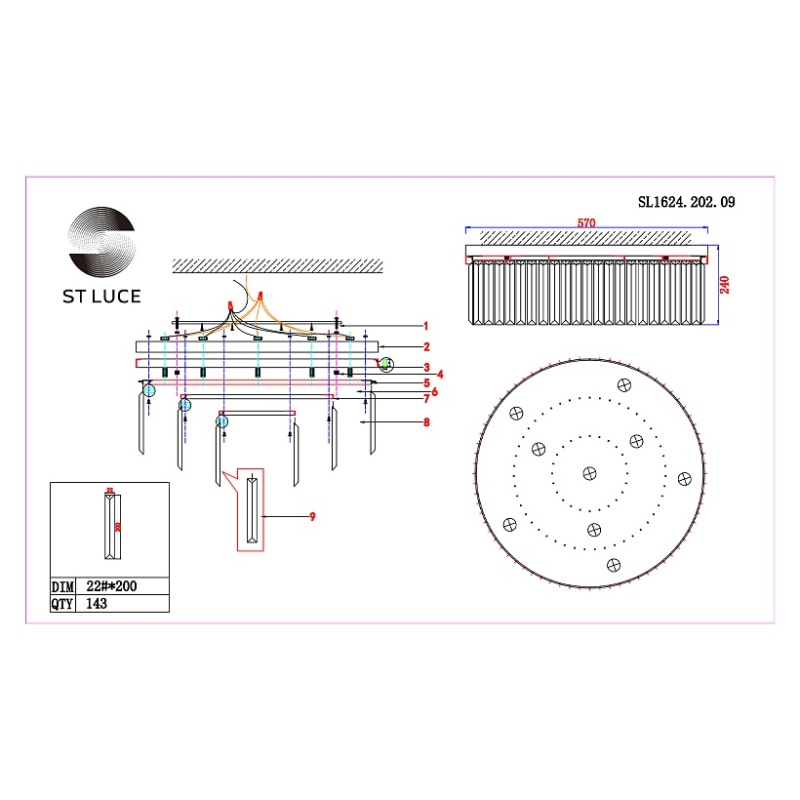 Характеристики Люстра потолочная ST-Luce шампань/прозрачный E14 9*40W SL1624.202.09