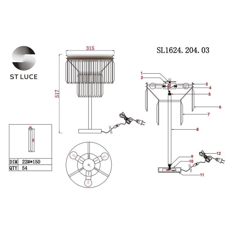 Торшер ST-Luce шампань/прозрачный E14 3*40W SL1624.205.03