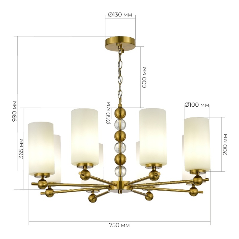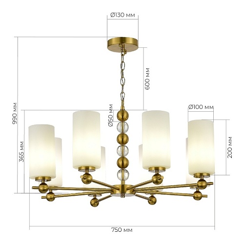 Характеристики Светильник подвесной ST-Luce латунь/белый E27 8*40W SL2003.303.08