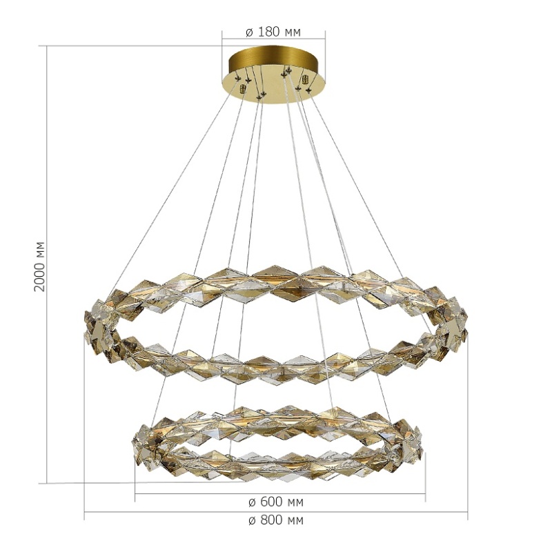 Характеристики Люстра подвесная ST-Luce Золотистый/Прозрачный,Янтарный LED 1*45W 3000K SL6009.203.02