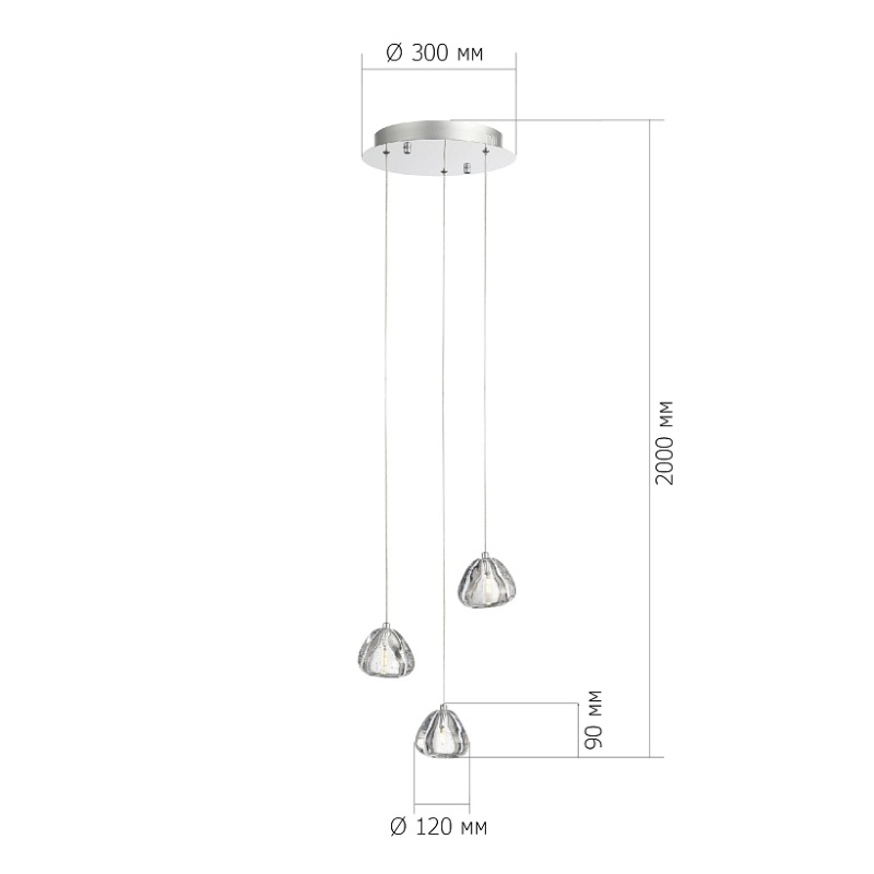 Характеристики Светильник подвесной ST-Luce Хром/Прозрачный с пузырьками воздуха LED 3*3W 3000K SL6017.101.03