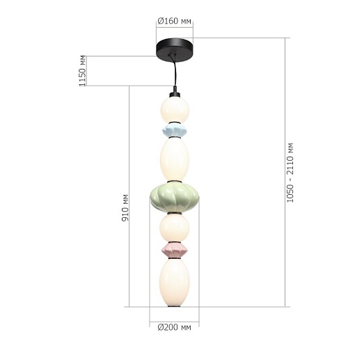 Характеристики Светильник подвесной ST-Luce черный/зеленый, розовый, синий, опаловый LED 1*32W 3000K SL6134.453.01