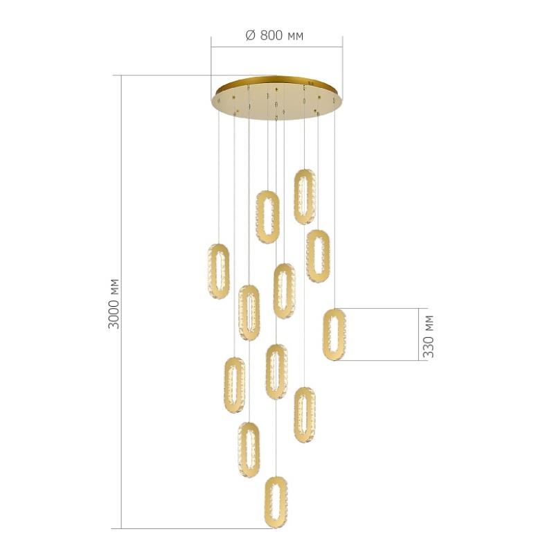 Характеристики Светильник подвесной ST-Luce Золотистый/Золотистый, Прозрачный LED 12*9W 3000K SL6506.203.12