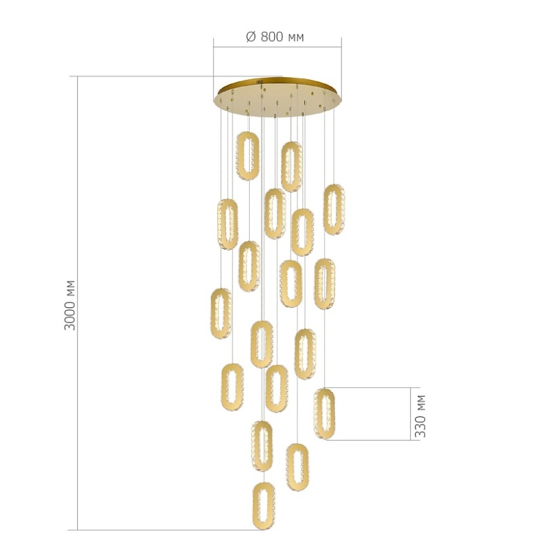 Характеристики Светильник подвесной ST-Luce Золотистый/Золотистый, Прозрачный LED 18*9W 3000K SL6506.203.18