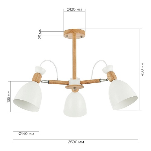Характеристики Светильник потолочный Светлое дерево, Белый/Белый E27 3*60W SLE103802-03
