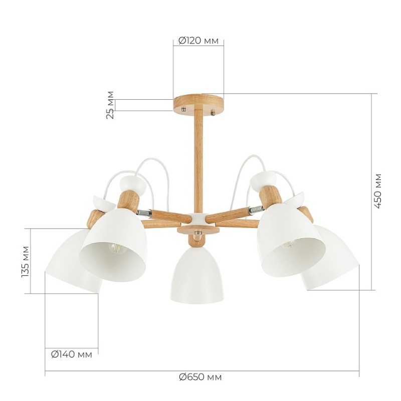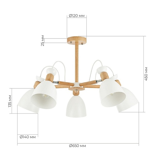Характеристики Светильник потолочный Светлое дерево, Белый/Белый E27 5*60W SLE103802-05