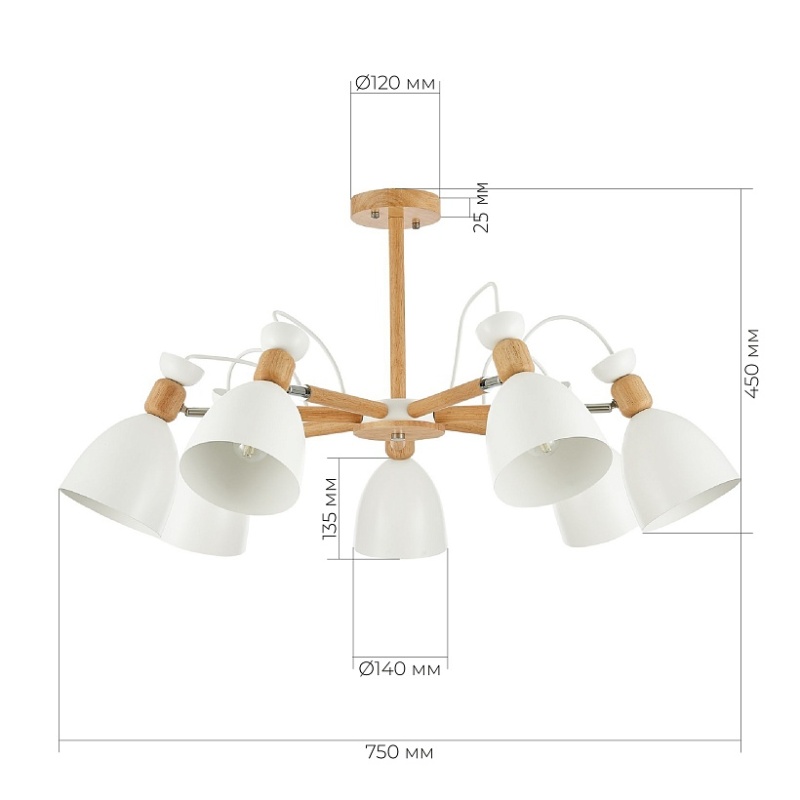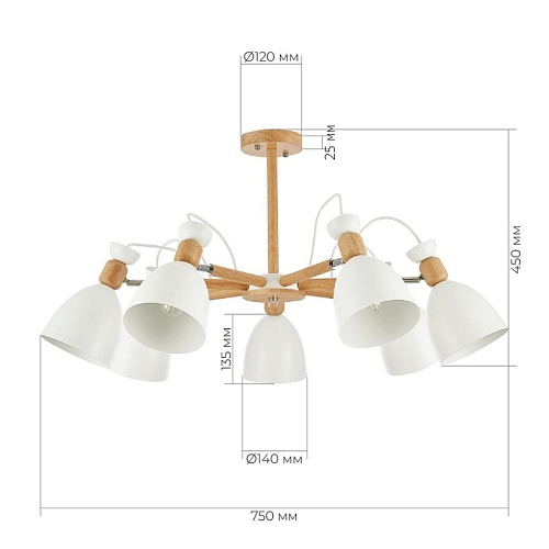 Характеристики Светильник потолочный Светлое дерево, Белый/Белый E27 7*60W SLE103802-07