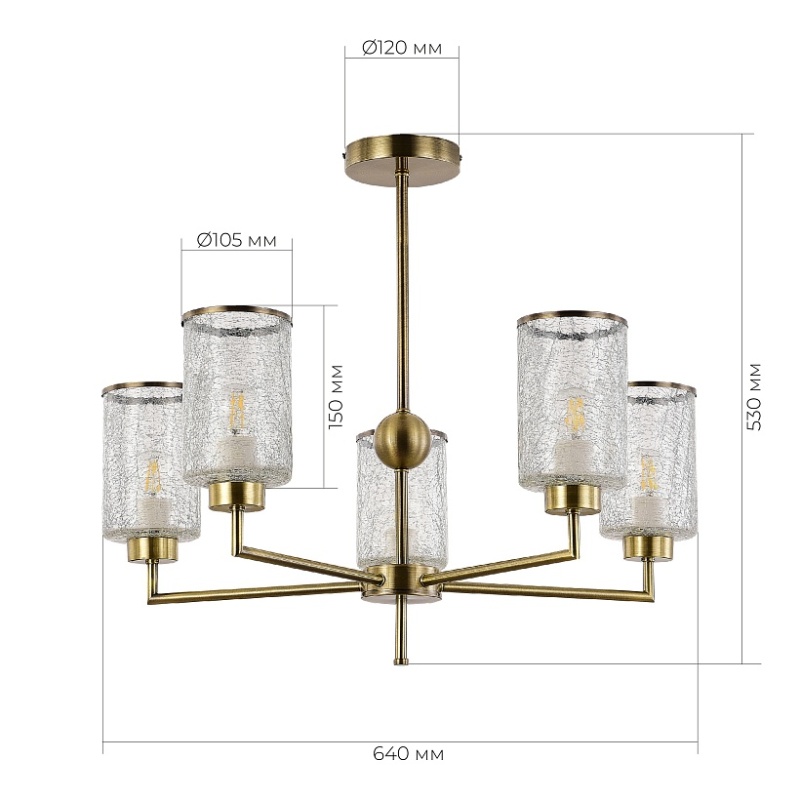 Характеристики Светильник потолочный Бронза/Прозрачный E27 5*60W SLE1046-302-05