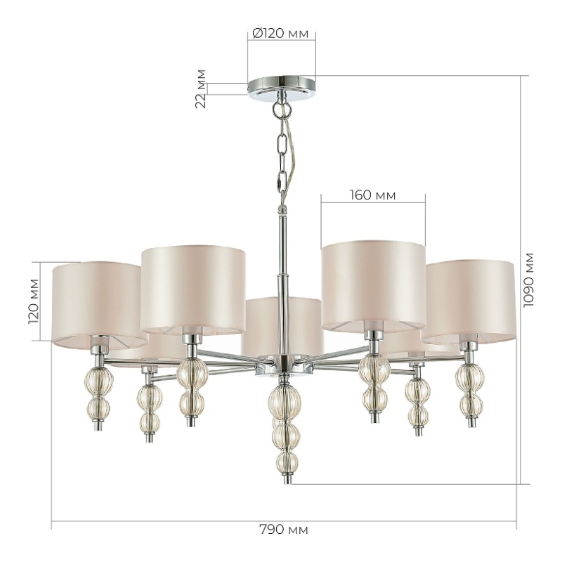 Характеристики Светильник подвесной Хром/Светло-бежевый E14 7*40W SLE105703-07