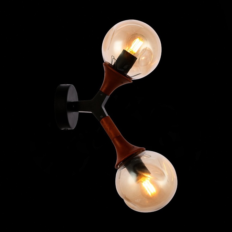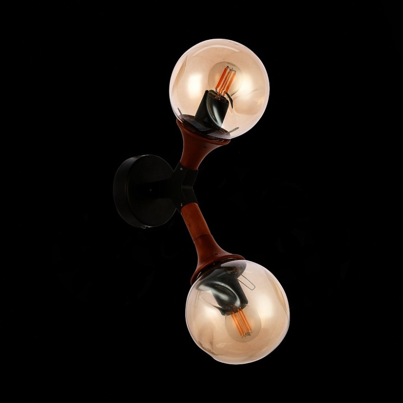Светильник настенный Черный, Темное дерево/Прозрачный, Янтарный E27 2*60W SLE109401-01