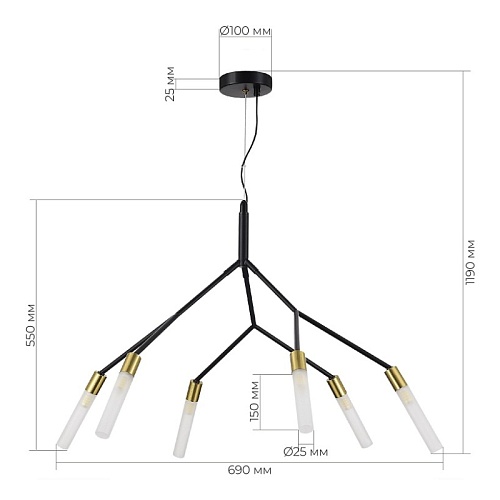 Характеристики Светильник подвесной Черный, латунь/Белый G9 6*5W SLE1129-403-06