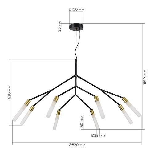 Характеристики Светильник подвесной Черный, латунь/Белый G9 8*5W SLE1129-403-08