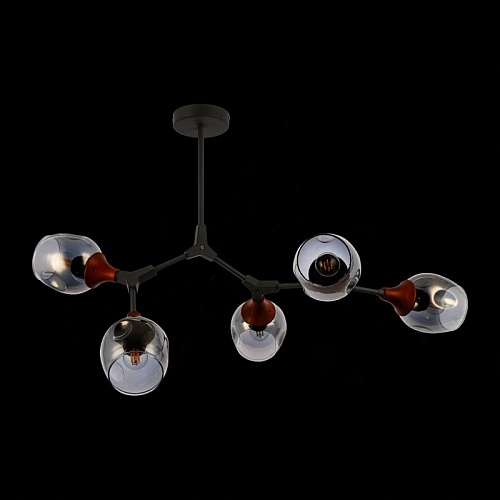 Светильник потолочный Серый, Темное дерево/Зеркальный E27 5*60W SLE113402-05