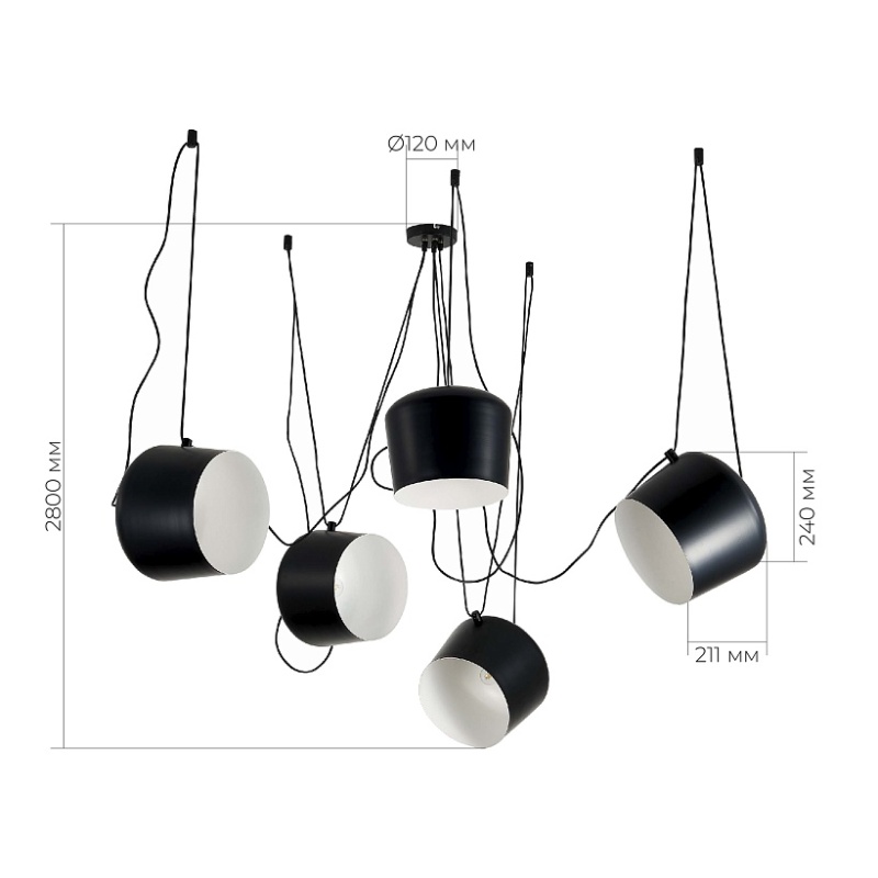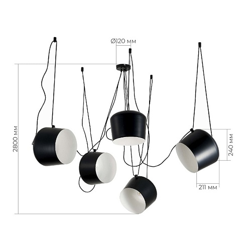 Характеристики Светильник подвесной Черный/Черный E27 5*40W SLE120643-05