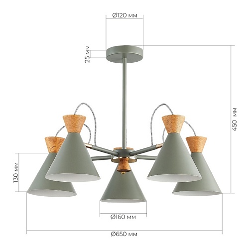 Характеристики Светильник потолочный Серый, Золотистый/Серый, Темное дерево E14 5*40W SLE125112-05