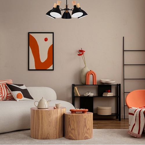 Светильник потолочный Черный/Черный, Светлое дерево, Золотистый E14 5*40W SLE1256-402-05