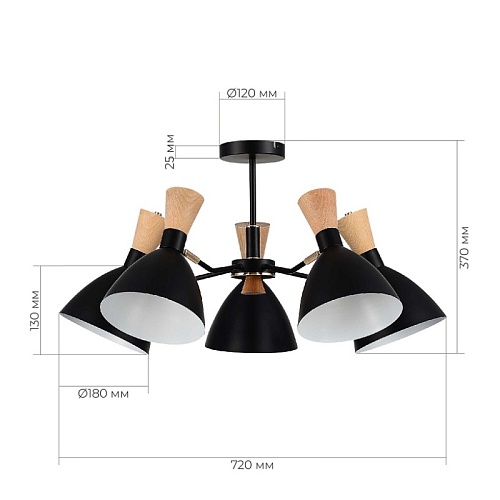 Характеристики Светильник потолочный Черный/Черный, Светлое дерево, Золотистый E14 5*40W SLE1256-402-05