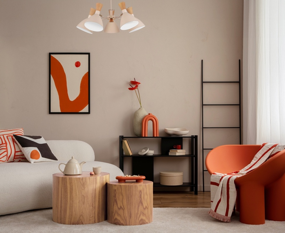 Светильник потолочный Бежевый/Бежевый, Светлое дерево, Золотистый E14 5*40W SLE1256-502-05