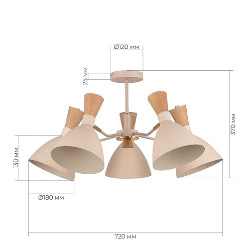 Характеристики Светильник потолочный Бежевый/Бежевый, Светлое дерево, Золотистый E14 5*40W SLE1256-502-05