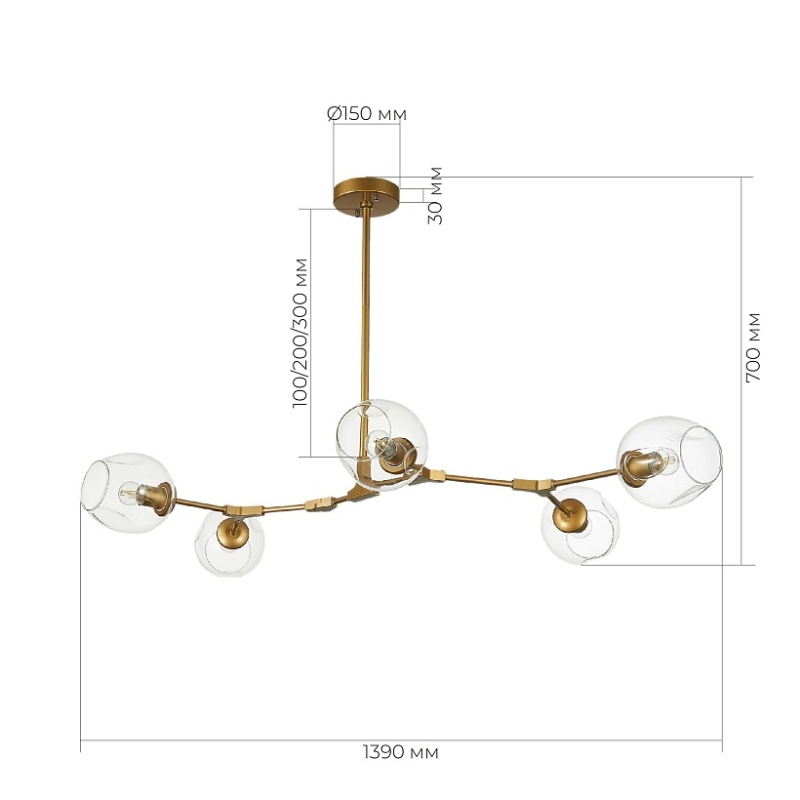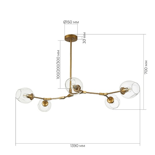 Характеристики Светильник подвесной Золотистый/Прозрачный E27 5*40W SLE154823-05