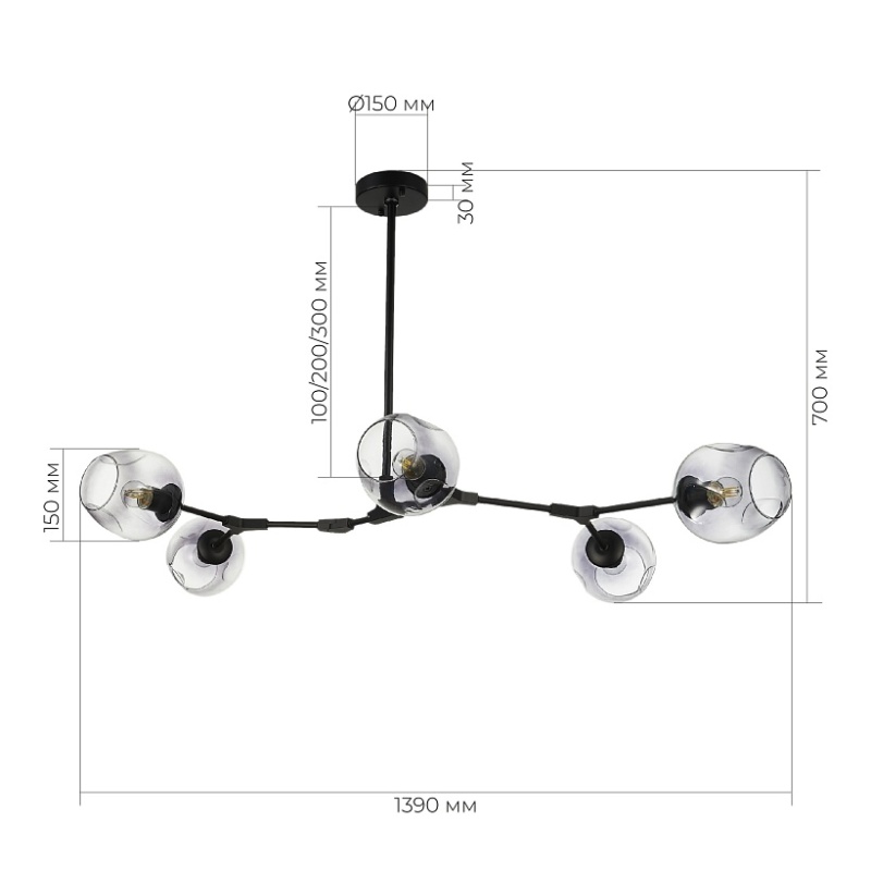 Характеристики Светильник подвесной Черный/Дымчатый E27 5*40W SLE154843-05