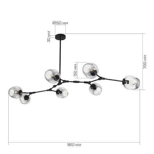 Характеристики Светильник подвесной Черный/Дымчатый E27 7*40W SLE154843-07