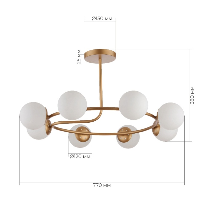 Характеристики Светильник потолочный Золотистый/Белый E14 8*40W SLE220602-08