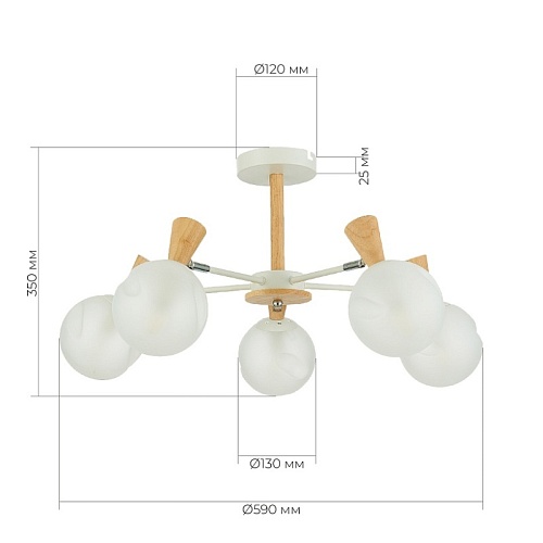 Характеристики Светильник потолочный Белый, Светлое дерево/Белый E14 5*40W SLE220702-05