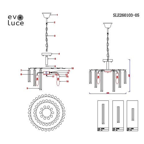 Характеристики Светильник подвесной Шампань/Шампань, Прозрачный E14 5*40W SLE260103-05