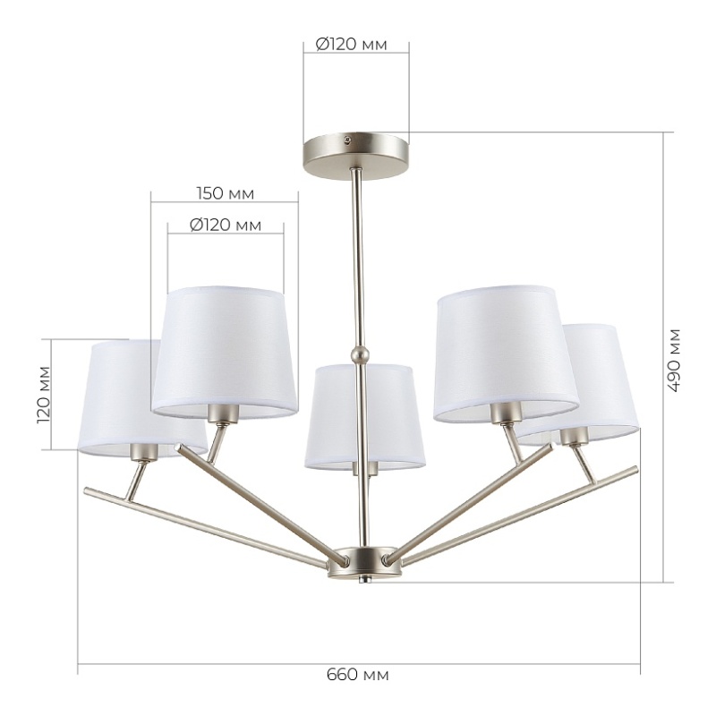 Характеристики Светильник потолочный Никель/Белый E14 5*40W SLE300102-05