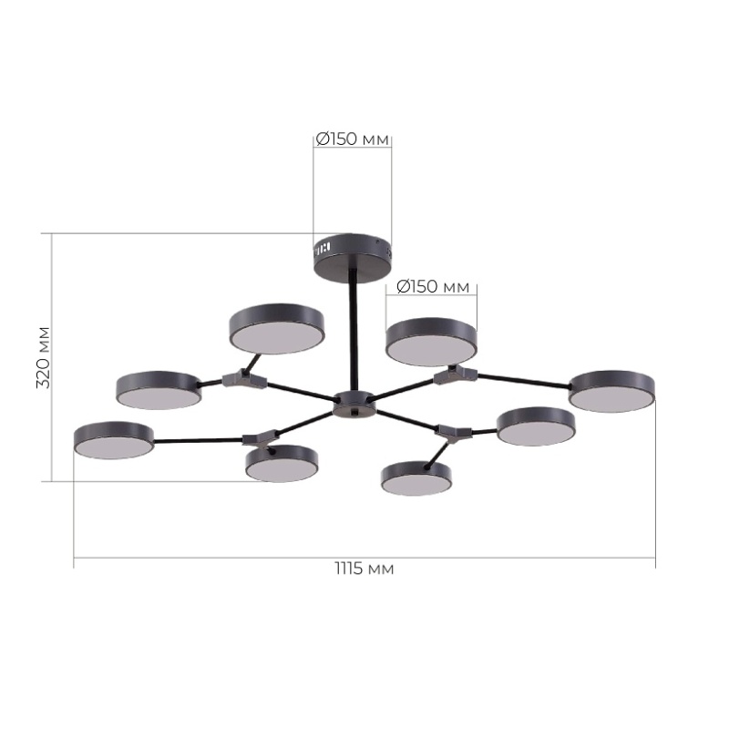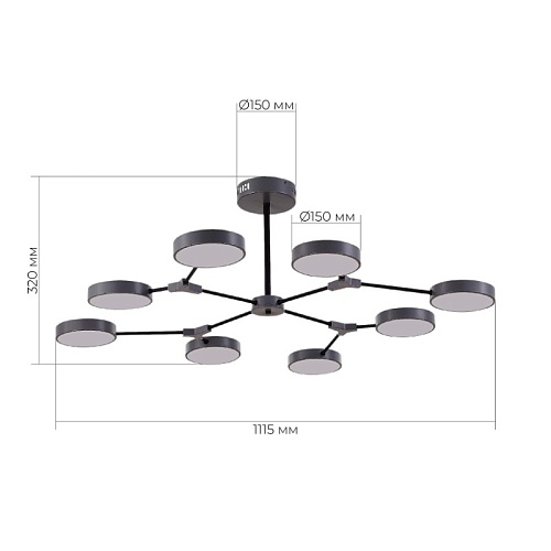 Характеристики Светильник потолочный Серый,Черный/Серый LED 8*10W SLE6003-702-08
