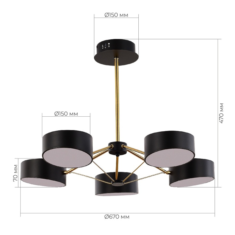 Характеристики Светильник потолочный Черный, Золотистый/Черный LED 5*10W SLE6005-402-05