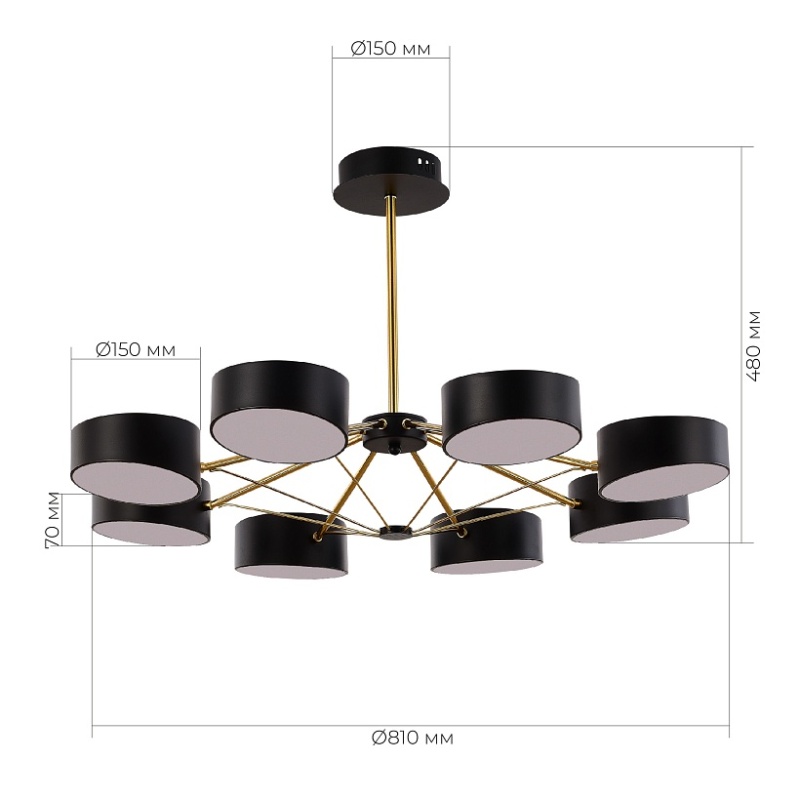 Характеристики Светильник потолочный Черный, Золотистый/Черный LED 8*10W SLE6005-402-08