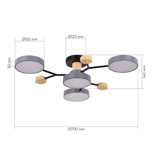 Светильник потолочный Серый/Серый LED 5*12W 3000K/4500K/6000K SLE6006-702-05