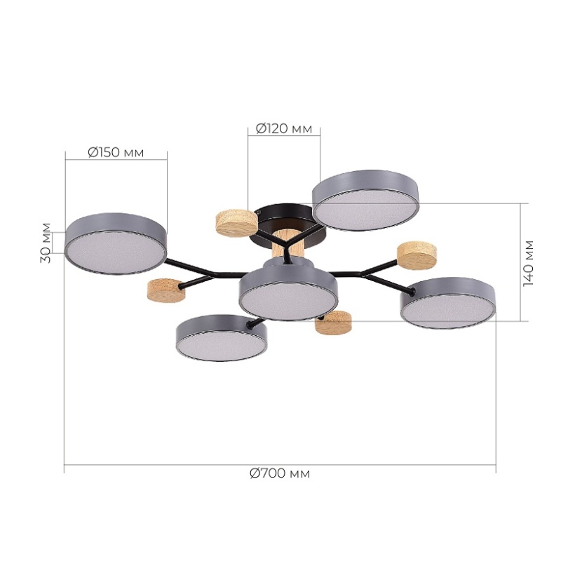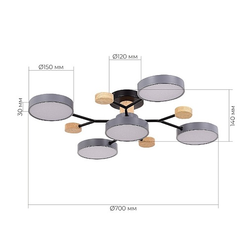 Характеристики Светильник потолочный Серый/Серый LED 5*12W 3000K/4500K/6000K SLE6006-702-05