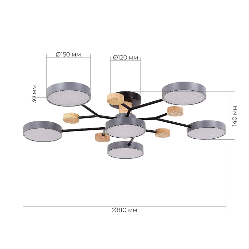 Характеристики Светильник потолочный Серый/Серый LED 6*12W 3000K/4500K/6000K SLE6006-702-06