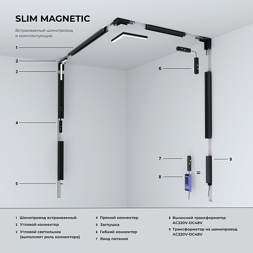 Характеристики Slim Magnetic Коннектор угловой для встраиваемого шинопровода под ГКЛ 12,5мм (черный) 85212/00 85212/00 Elektrostandard