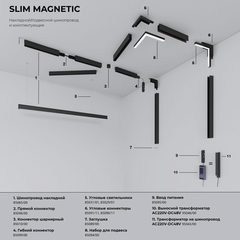 Шинопровод накладной белый 1 м Slim Magnetic 85085/00 - фото