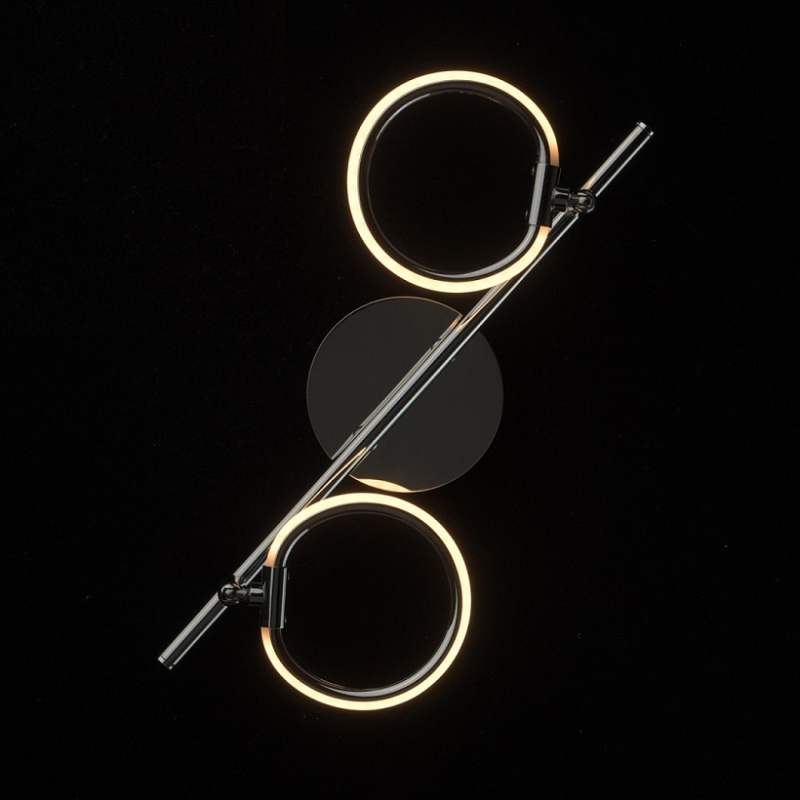 Основание выполнено из металла и гальванизировано в цвет хрома. Корпус закрыт пластиной из нержавеющей стали отполированной до зеркального блеска.Плафоны: сплав алюминия, гальванизация в цвет хрома. Светодиодный источник света типа SMD-stripe закрыт рассеивателем из белого силикона. Плафоны оборудованы поворотными механизмами: угол поворота 350˚, угол наклона 90˚.
