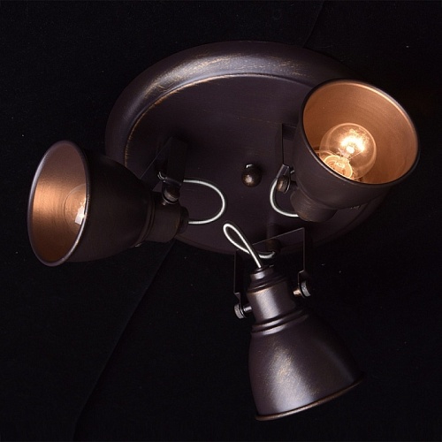 Оснрование светильника выполнено из сплава металла и обработана по технологии ручного окрашивания. На первый, основной, слой цвета кофе нанесен второй слой цвета бронзы.