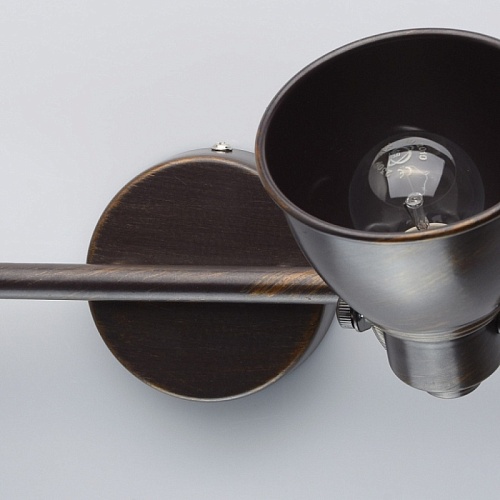 Арматура светильника выполнена из сплава металла и обработана по технологии ручного окрашивания. На первый, основной, слой цвета кофе нанесен второй слой цвета бронзы